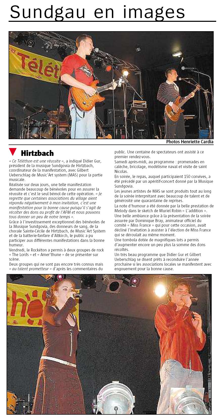 Alsapresse du 11/12/2007 - Téléthon à Hirtzbach